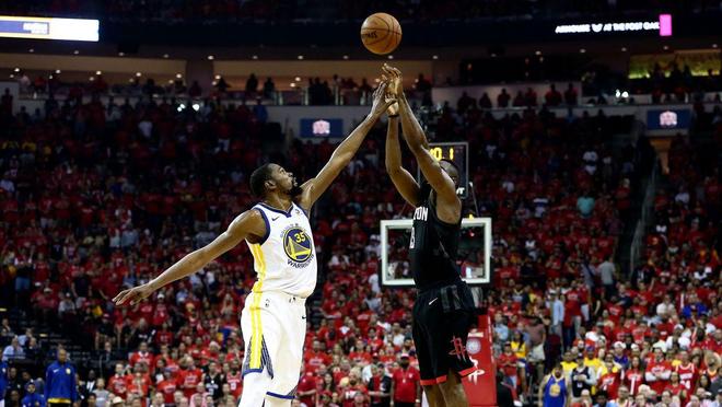 然而,上天还是给到了火箭队一些机会,在第五场比赛中,杜兰特意外受伤离场,并且缺席了之后的比赛。在如此天赐良机之下,火箭队却在第六战栽了跟头。虽然哈登拿到了35分,保罗也有27分、11个篮板和6次助攻的输出,但勇士队这边,库里却完成了爆发,全场独得33分,而且全部来自于下半场,克莱也有27分的火力支援。最终火箭队功亏一篑,再度吞下了败绩。