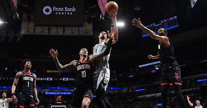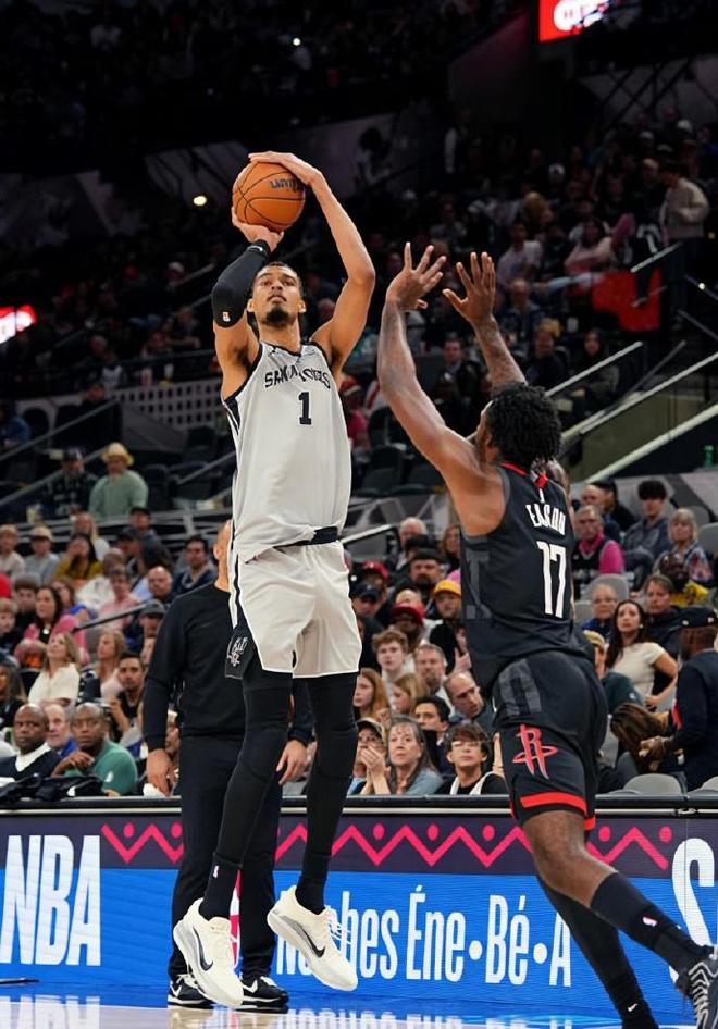 马刺4人20+三杀火箭,马刺145-120大胜火箭,文班亚马高效轰29分