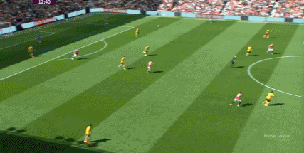 自己来到了边路,或者身前空间广袤,可以试着自己突破,但是,戈登选择了对自己球队推进成功率更高的线路: